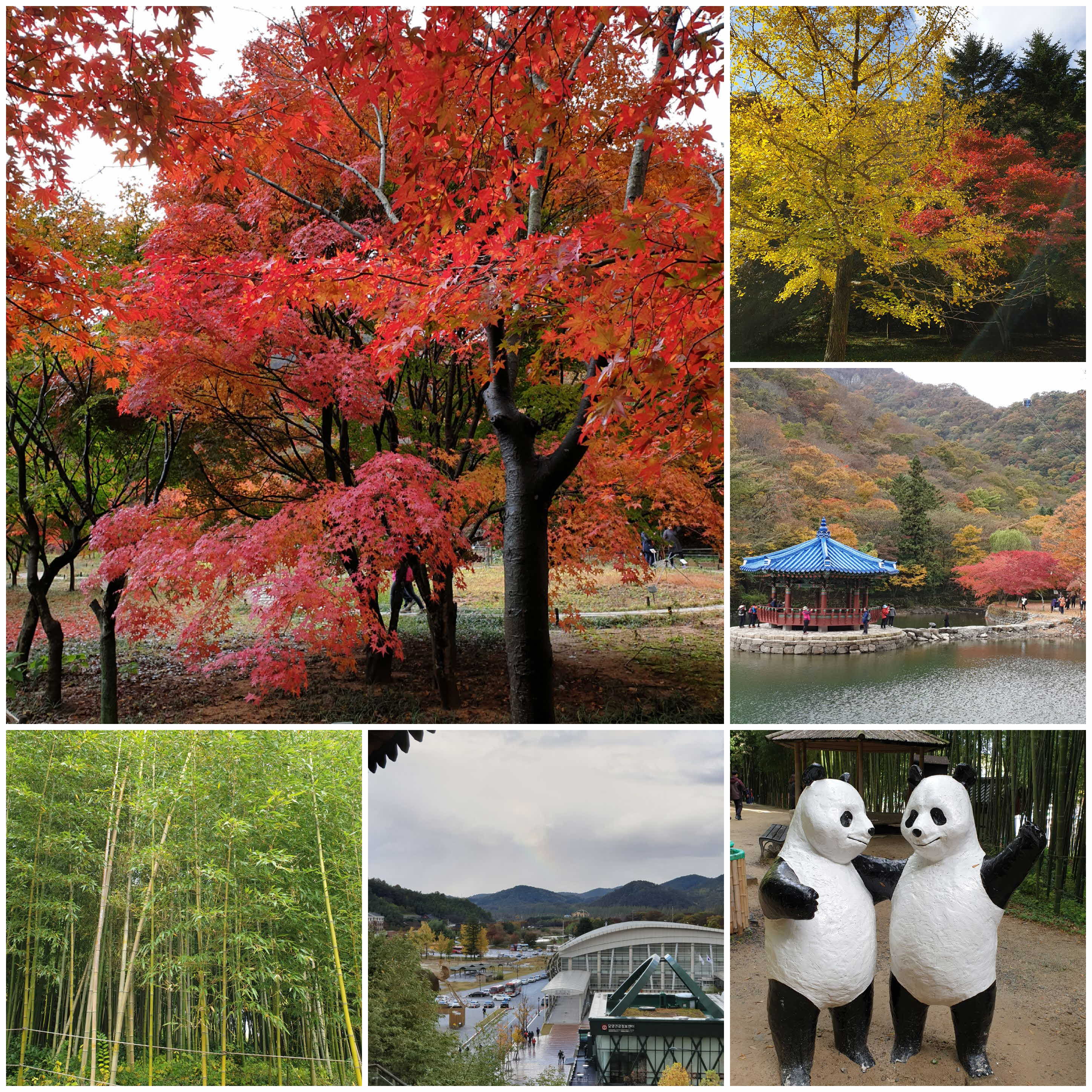 비도 오고 바람도 불어 쌀쌀한 날이었지만 단풍 보는것 만으로도 기분 좋았다. 내장산 도착하기전에 가이드님이 들려준 정읍 이야기와 내장산 이야기도 재미있었다. 내장산에서의 시간은 넉넉했다. 담양으로 이동하여 죽녹원에 갔는데 쭉쭉 뻗은 대나무를 보니 시원시원한 기분이 들었다. 비 온 뒤라 그런지 운좋게 무지개도 봤다. 8개의 테마와 이이남 아트센터를 속속들이 자세히 못보고 온 것이 좀 아쉽다. 빨주노의 각양각색 단풍도 보고 곧게 쭉쭉뻗은 초록 대나무도 보고.. 재미있는 이야기도 잘 들려주시고 사진도 찍어주신 박은화 가이드님과 안전운전 해주신 기사님께 감사드린다. |