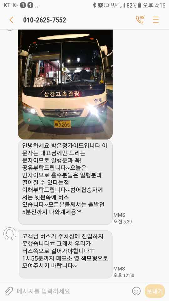 일정상 2시에 1차 목적지인 남이섬에서 쁘띠프랑스로 출발이 예정되어 있었습니다. 그러나 피크로인해 많은 인파가 몰리고 비도 오는 영향인지 주차장에 버스가 들어오지 못해 1시 55분까지 모여서 차가 있는곳으로 이동하자는 연락을 받았습니다 그리고 저희는 모인 장소에서 비바람과 천둥번개를 뚫고 차가 다니는 왕복2차선 고개를 갓길로 줄지어 이동했습니다. 결과적으로 같이 이동하던 차량 네대의 인원이 섞이고, 중간에 줄이 끊어져서 낙오되는 인원이 생겼고 그분은 담당가이드와 수차례 연락을 취했으나 연락이 되지않아 항의하는 사태가 벌어졌습니다. 다행히 저는 제가 원래 탔던 차량에 탑승했지만 제 짐을 둔 자리에 다른분이 탔었다면 하는 가정을 생각하니 불안하더군요. 2시 30분경 버스는 원래 출발지인 남이섬 주차장을 통과해서 쁘띠프랑스로 이동했고 주차장에 도착하기까지 도로가에 주차하여 낙오된 인원을 탑승시켰습니다. 이어진 일정이 있어 시간이 촉박하다는 것은 이해합니다. 하지만 어차피 고객의 양해를 얻어야 한다면 일정에 맞추기 위해 위험한 상황을 감수해달란 양해가 아니라 안전한 이동을 위해 시간적 양해를 구해야 하지 않았나 아쉬움이 남습니다. |