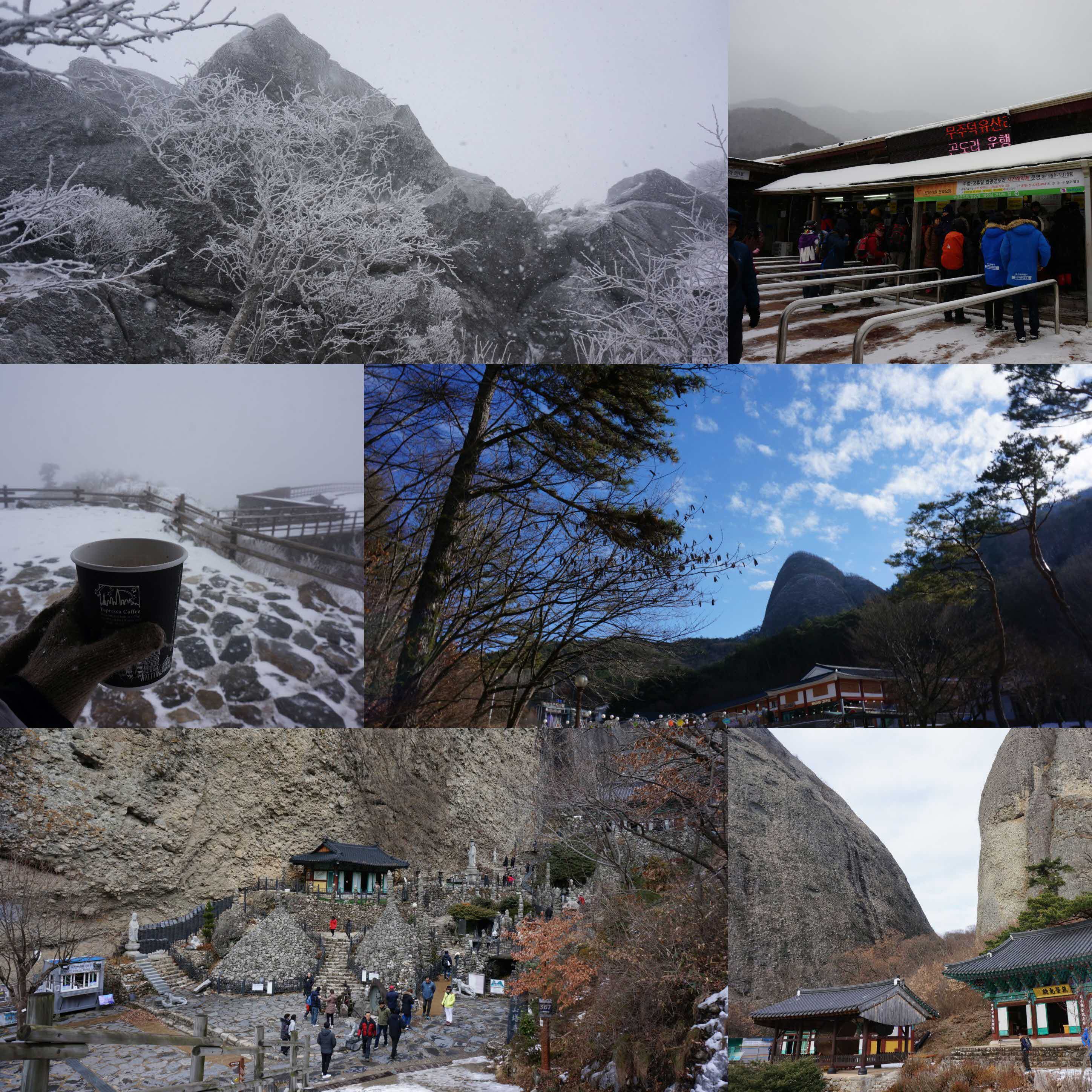 얼마남지 않은 2018년 주말을 어떻게 알차게 보낼까 하다 매년 가보고 싶었던 설천봉코스를 하루전날 급하게 예약하게 되었습니다. 깜깜한 새벽, 일기예보에서 비가 올 수도 있다는 소식을 보고 걱정이 되었으나 마이산으로 가는 길은 언제 눈이 왔냐는 것처럼 해가 쨍쨍하니 또 다른 여행을 온 것 같은 느낌을 들게 했습니다. 수 없이 펼쳐진 계단을 올라 숫마이봉, 암마이봉을 보고 신비로운 느낌의 탑사를 둘러본 후 내려왔습니다. 내려오는 길 길게 뻗은 벚꽃나무를 보며 봄에도 이 코스가 있다면 또 와보고 싶다는 생각을 했습니다.