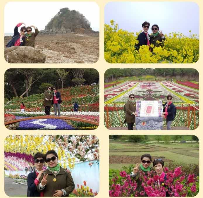태안튤립축제 원래 세명이 가기로 예약을 해놨었습니다. 근데 한 친구가 비가와도 가자는 것이었어요 우산도 챙기고 춥다고 해서 옷도 따시게 입고 갔습니다. 마침 제가방안에 예비용으로 잠바를 하나 넣어와서 친구에게 입게 했습니다. 태안에 도착하니 다행이 비가 오지 않았습니다. 둘이서 독사진만 찍고 있었는데 마침 가이드님이 풍선터뜨리기도 하고 꽃 열차도 탔습니다. 사진 도와 드릴테니 해변으로 오라는 문자~ 해변의 멋진 풍경도 감상하고 유채꽃도 제주도만큼 예쁘게 많이 피어 있었습니다. 꽃지해변의 할미바위 할아비바위도 마침 물때가 맞아 걸어서 가까이서 볼수 있어 너무 좋았습니다. 그리고 자연휴양림으로 출발~ 이슬비가 살짝 왔습니다. 두번째로 뵈는 이지훈가이드님의 친절한 안내와 문자로
