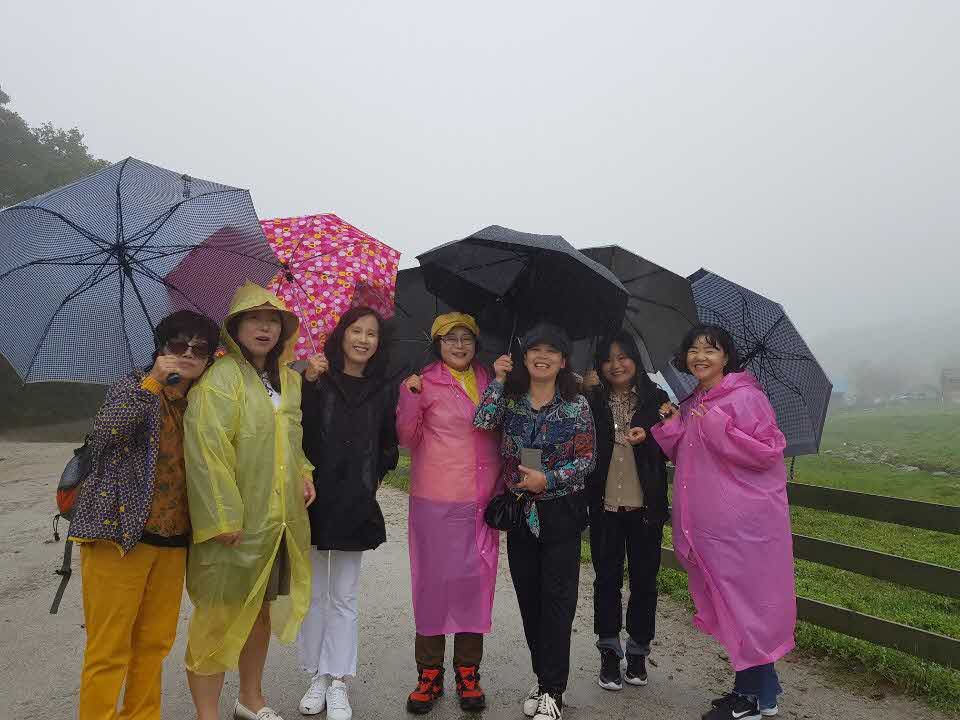 비소식이있어 우산준비하고서. 부슬부슬 내리는 빗속을 우린 깔깔 .. 우중의 여인되어 목장의 양떼들이 놀라지는 않았을랑강 ㅎㅎ 주문진항의 회로 목을 축이공. 해변가에서의 즐거운 시간과 오붓한 카페에서의 정담으로 아쉬운 발길을 돌려 버스안. 조금은 시끄러웠을 우리 부늬기에 우린 죄송함도 잊은채 입담?을 나누공. 대구도착으로 도야지국밥 한그릇으로 총총. 그냥 갈 순 없잖아 아직도 채우지 못한 일잔으로 이 여행을 마무리하는 기분 짱였음을 ~~^^친절한 가이드님 감사했으며 일일이 인사 나누지 못햇지만 이날의 인연들께 감사 인사 올립니다 행복하세요 |