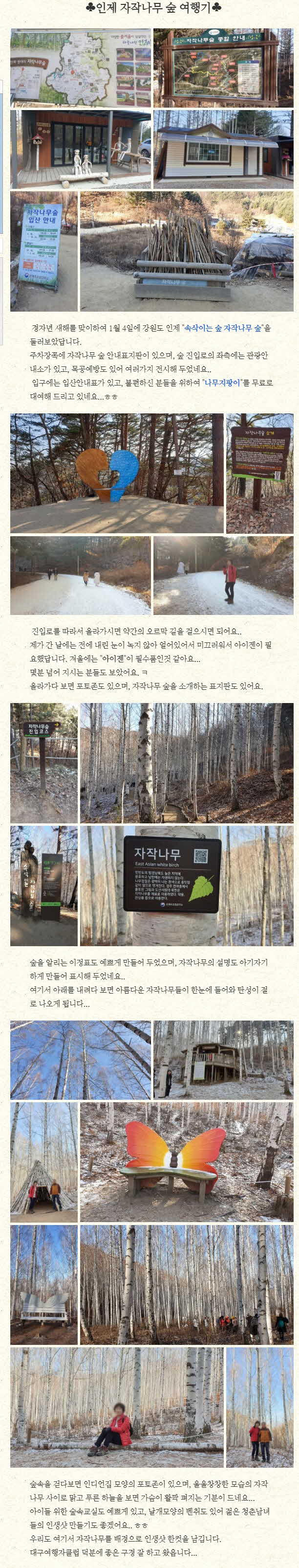 제목 ♠인제 자작나무 숲 여행기♠ 등록일 20.01.14 조회 778