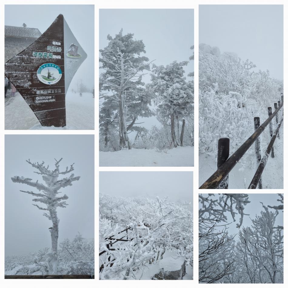 곤도라를 타고 설천봉까지 슝==333 눈꽃이 만발하여 겨울왕국에 온듯한 환상적인 풍경이 기다리고 있었다. 추위를 잊게 만드는 눈꽃터널~♡사슴뿔 같기도하고 바닷속 산호 같기도하고~ 하지만 맑은하늘은 볼수없었ㅠㅠ 다음에 또 오라는??? 가이드님,기사님 감사해요.새해복 많이 받으세용^^