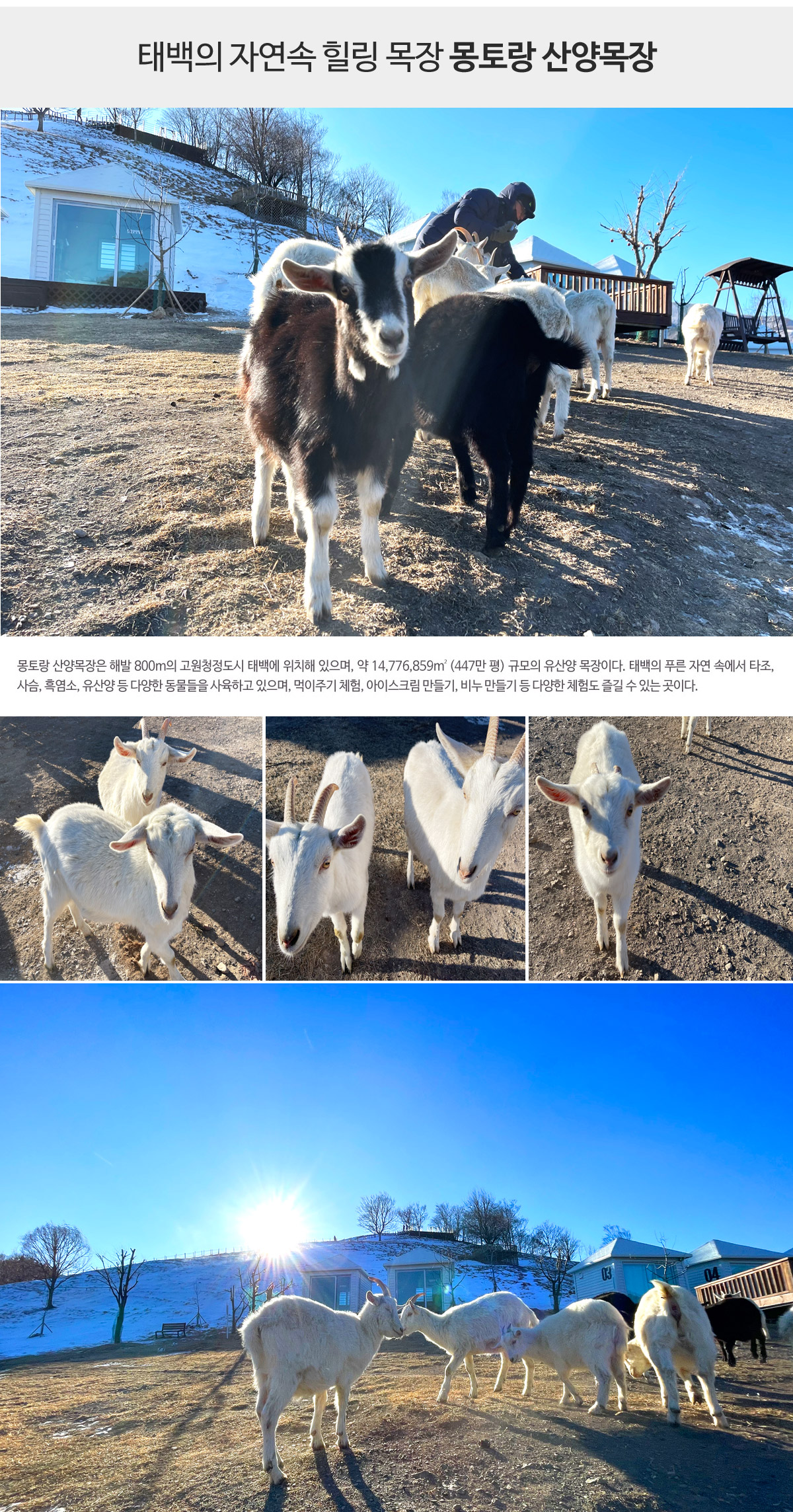 - 해발 800m의 고원청정도시 태백에 위치한 유산양 목장