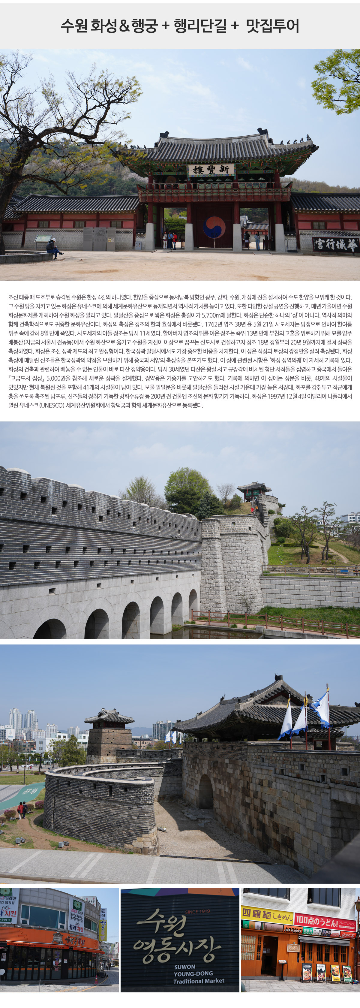 * 화성도 둘러보시고, 수원에서만 먹을수 있는 먹거리들로 맛있는 식사 하세요~