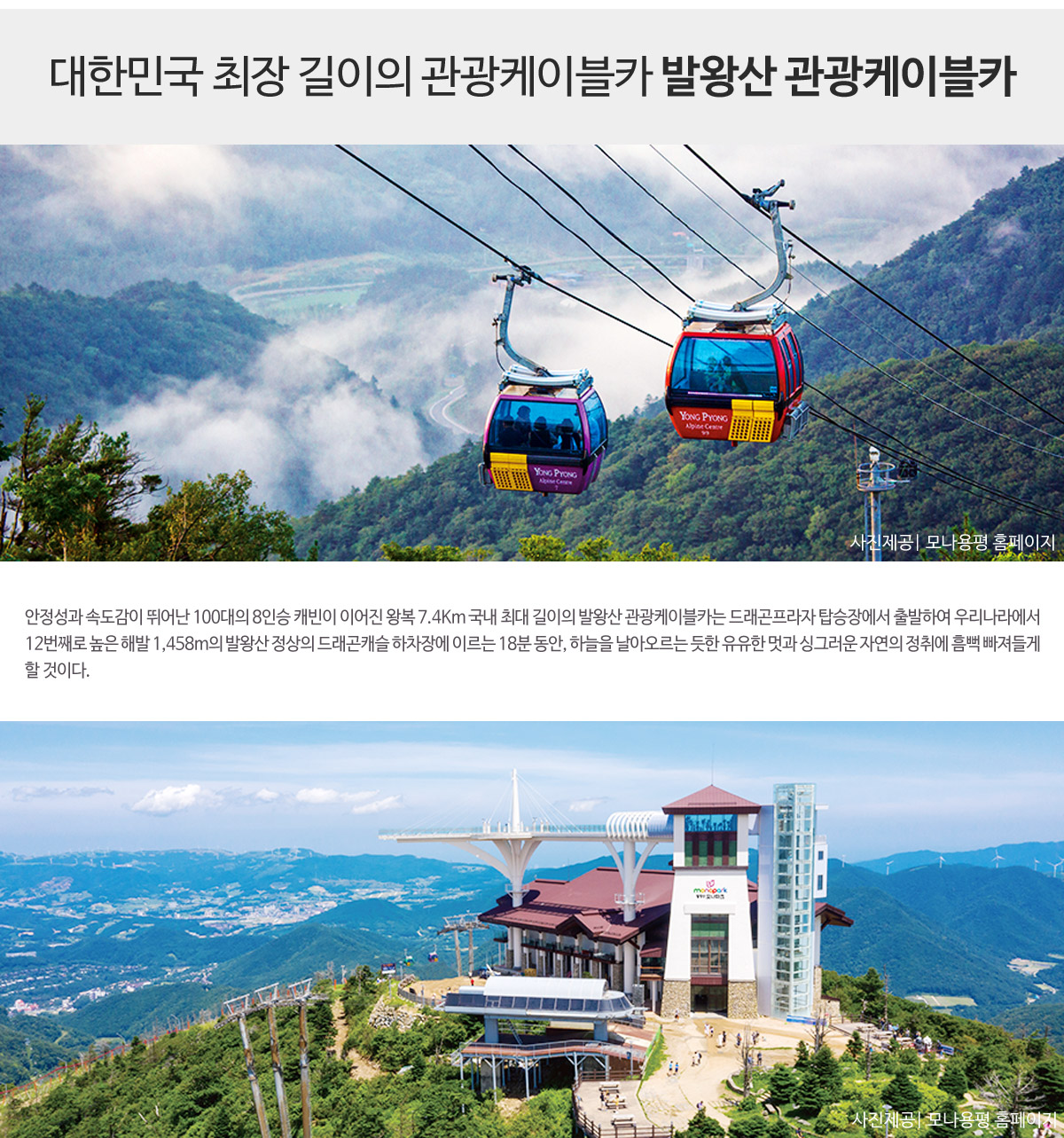 - 해발 1,458m의 발왕산 하늘을 날아오르는 듯한 착각을 불러 일으킵니다.