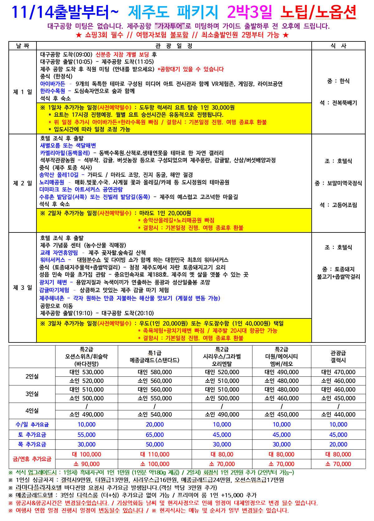 제주도 티웨이항공 패키지 2박3일 [전일정 식사포함]