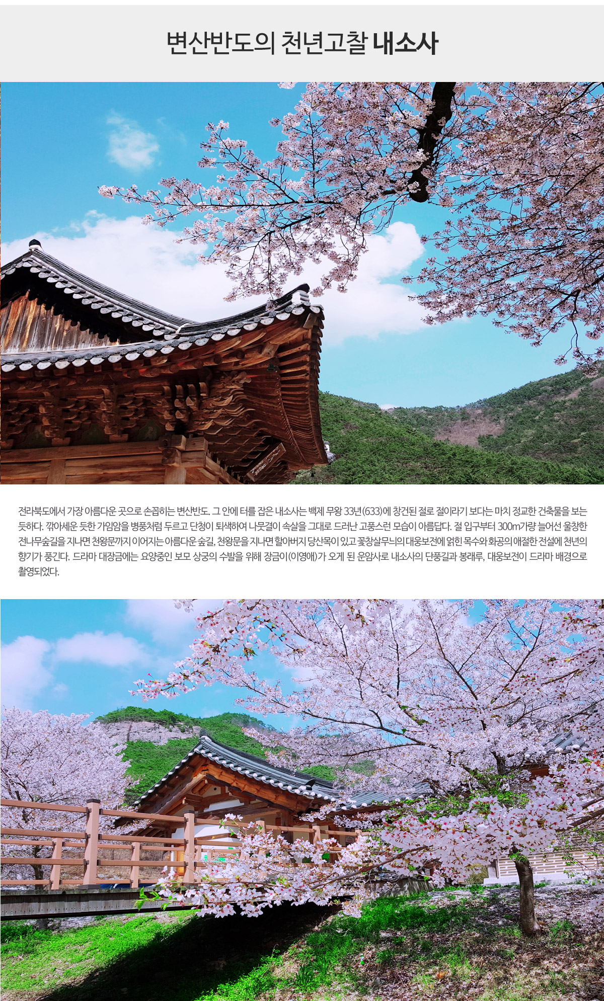 천년고찰 내소사 전나무숲길/변산반도 국립공원 채석강/전주한옥마을+전동성당