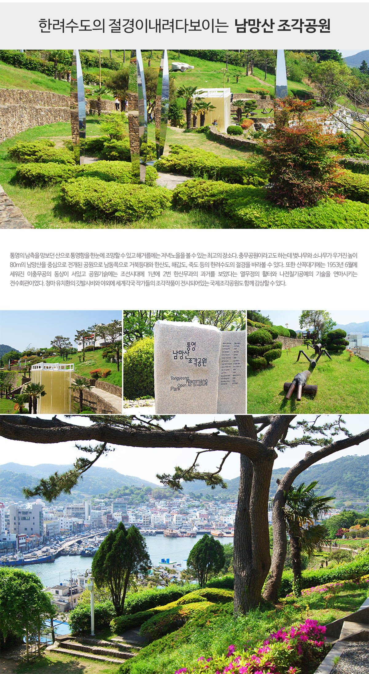 - 남망산공원 정자에서 내려다보는 통영의 바다풍경은 일품~ 통영의 멋진 풍경을 한눈에 담아가세요.