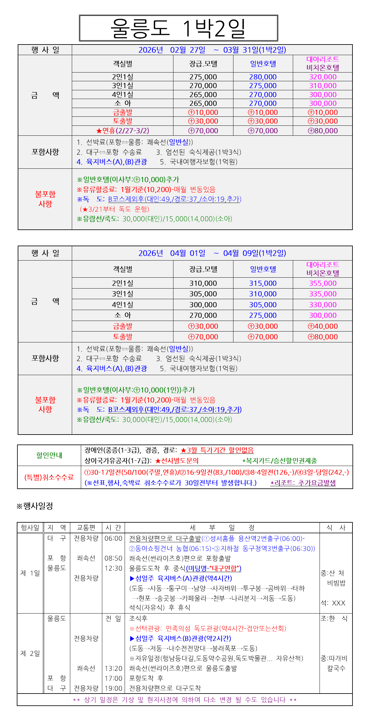 [매일출발] 울릉도&독도 3월특가 쾌속선 1박2일