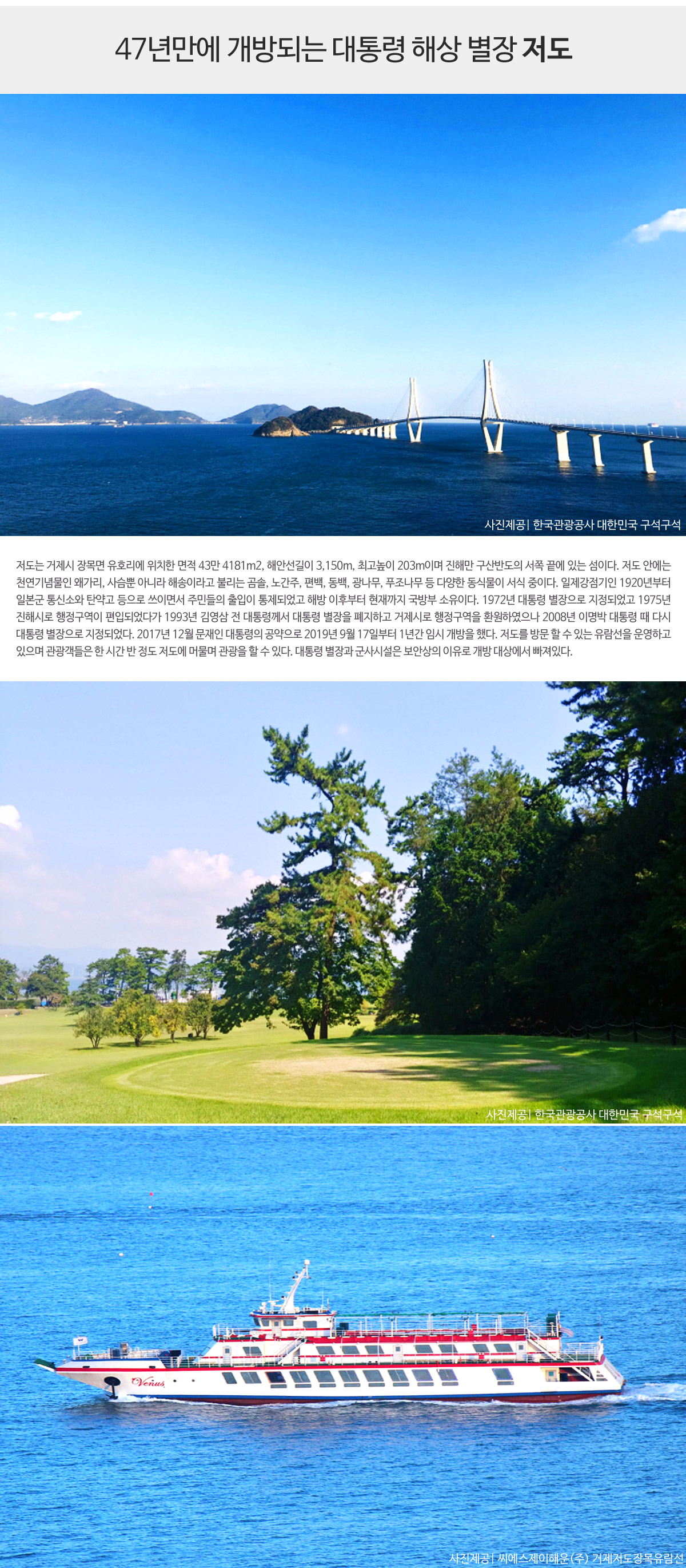 - 역대 대통령 휴양지로 민간인 출입이 금지된 섬