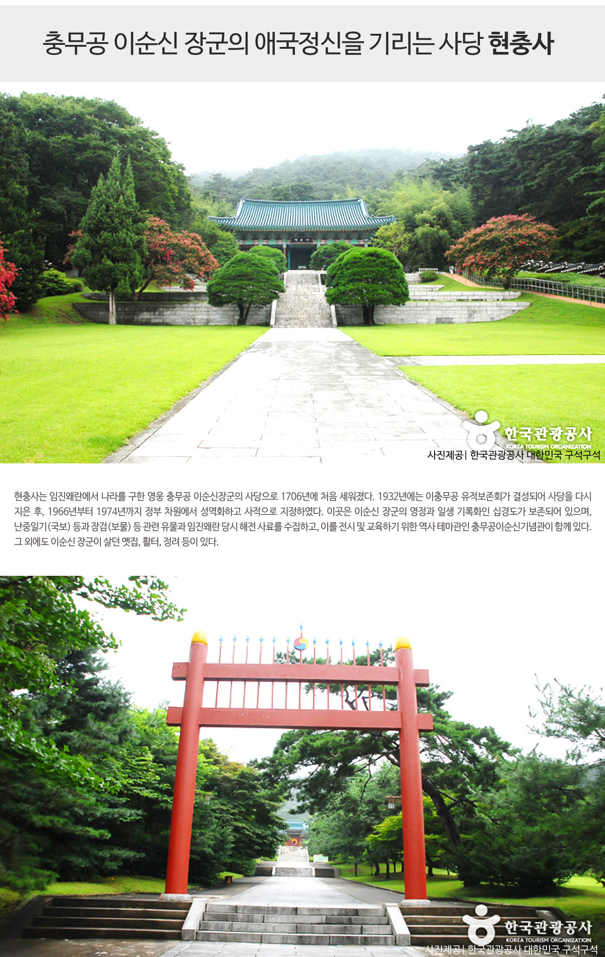 - 책이나 영화가 아닌 현충사에서 이순신장군의 깊은 울림을 직접 느껴보세요.