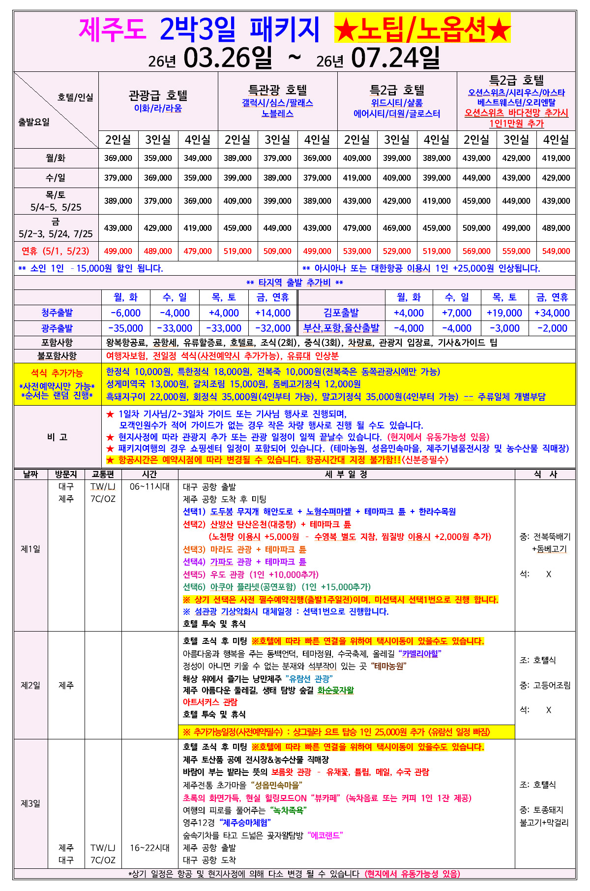 제주도 2박3일 섬투어포함[마라도or가파도] 패키지 노팁/노옵션
