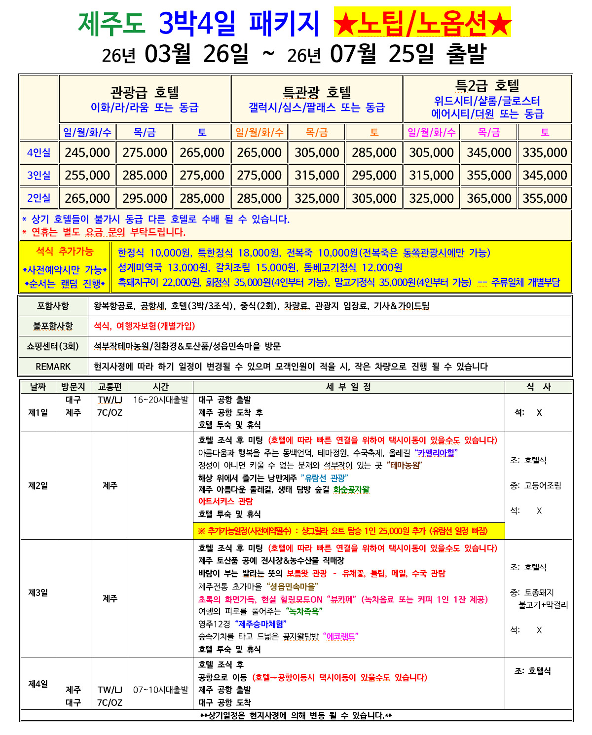 ★특가★ 제주도 3박4일 패키지 [대구오후출발/제주오전출발]