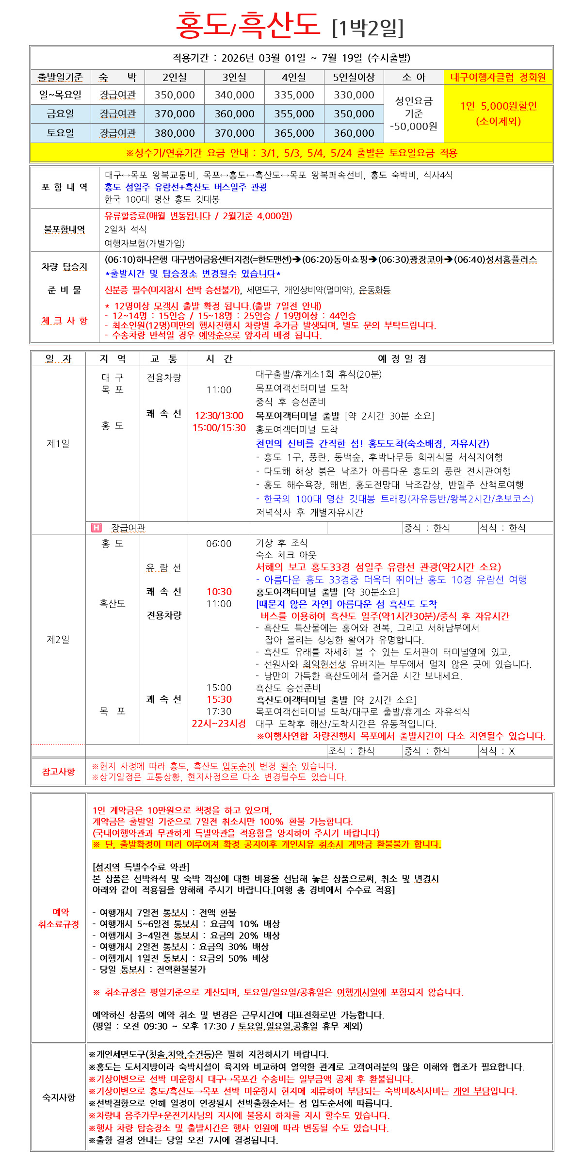 홍도&흑산도 1박2일 [수시출발]