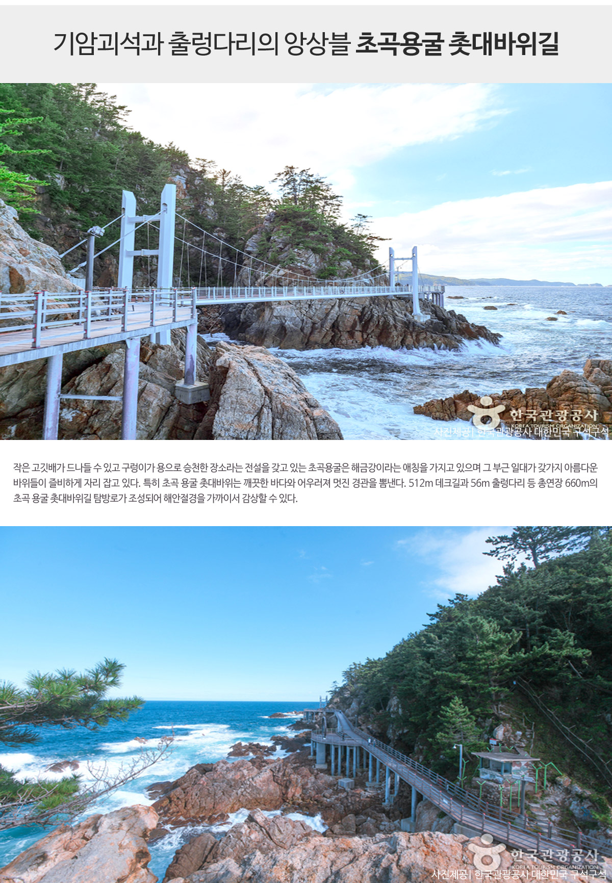 - 작은 고깃배가 드나들 수 있고 구렁이가 용으로 승천한 장소라는 전설을 갖고 있는 <초곡용굴>