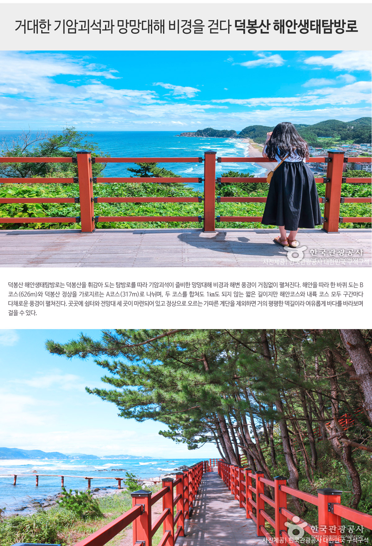 - 512m 데크길과 56m 출렁다리등 탐방로가 조성되어 해안절경을 가까이서 감상할 수 있는 곳