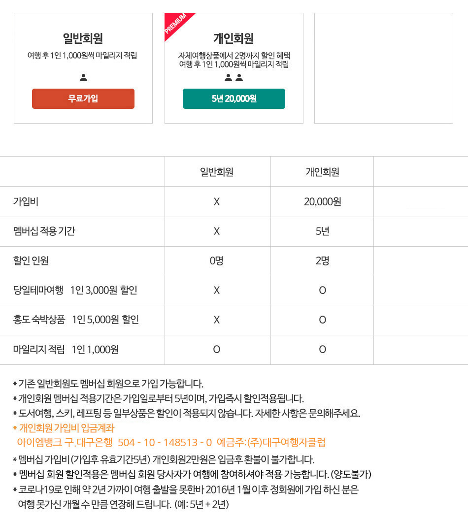 • 예금주: 한충희 (대구여행자클럽)